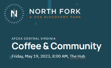 Join AFCEA CeVA in The Hub (Town Center Three) for morning coffee and discussion centered on community, specifically, how you and/or your employer support the defense community in Central Virginia.