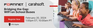 Register today for Fortinet's E-Rate webinar where our IT Education experts will discuss a groundbreaking announcement from the FCC. WIFI on school buses is now E-Rate funding eligible, and your partners at Fortinet are here to guide you through the opportunities this presents for your school. Fortinet’s IT Education experts are dedicated to helping your organization access crucial funding, enhancing, and safeguarding your technology infrastructure.