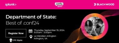 Join Splunk, Blackwood, and Carahsoft for a Department of State event showcasing the best of .conf24 on Thursday, September 19th. At this event, you will have to opportunity to: