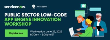 Join us in-person for a two-day, hands-on Low-Code App Engine Innovation Workshop to see how agencies are reimagining their approach to automation and app development with ServiceNow’s Creator Workflows and Generative AI. Learn how to boost productivity at scale by building high-value, low-code mission apps with App Engine. Whether you’re a pro developer of any level looking to streamline repetitive tasks, a Low-Code business analyst looking for ways to solve unique mission challenges, an architect ready to drive the next phase of innovation, or a business leader seeking the right automation solutions, this Low-Code hands-on workshop is for you!