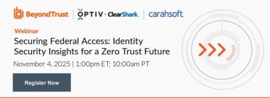 Watch the recording as our government security experts unpack the latest trends in identity threats, strategies for elevating cyber defense to achieve zero trust, and the importance of early warning telemetry in disrupting cyberattacks. BeyondTrust and Optiv + Clearshark share best practices for implementing modern identity security capabilities and showcase how BeyondTrust helps agencies gain complete visibility and control over their identity estate - human and machine - across hybrid environments.