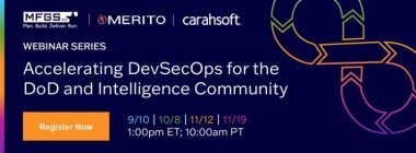 Join MFGS, Inc. and Merito for a four-part webinar series designed for U.S. Department of Defense and Intelligence Community stakeholders. During each session, you will learn how to modernize software delivery with confidence, speed, and security, with a spotlight on AI and ML-enhanced automation.