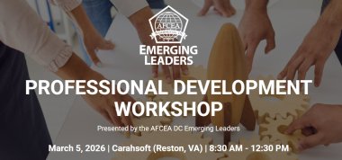 AFCEA DC Emerging Leaders are hosting an inaugural Professional Development Day. This event consists of two moderated panels and a moderated speaker, with time set aside to network with colleagues and panelists.